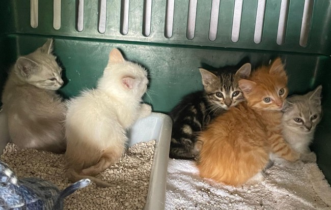 Hace un mes nos pasaron un aviso de una mamá, que había parido en un chalé, de una zona donde llevamos la recogida de animales. Fuimos al aviso pero la familia que llamó, había perdido la pista de los pequeños, la mamá los había movido de sitio hacia días, y no sabían donde estaban. Pusimos jaulas y la mamá, junto con otros dos gatos de la zona, que no estaban castrados, entraron. Ahora nos quedaba dar con los bebés, o correr para devolver lo antes posible a la mamá a la zona, para que los pudiera alimentar. Se nos había hecho de noche, no se veía nada, pero con linternas y un audio con maullidos, fuimos recorriendo toda la zona y por suerte, gracias a la curiosidad de los pequeños, vimos como los dos mas atrevidos, miraban fuera de su escondite, para ver qué pasaba. Conseguimos atrapar a cuatro de los pequeños haciéndoles una encerrona, pero el quinto se escapó. Como uno de ellos salió corriendo, dejamos jaulas de bebé en la zona, para que durante la noche al volver al escondite pudiera caer en alguna de ellas. Al día siguiente VINO había caído en la trampa y se reunía con sus hermanos. Ahora mismo están asustados, pero con los días van perdiendo el miedo y pronto serán adorables gatitos en busca de un hogar.
