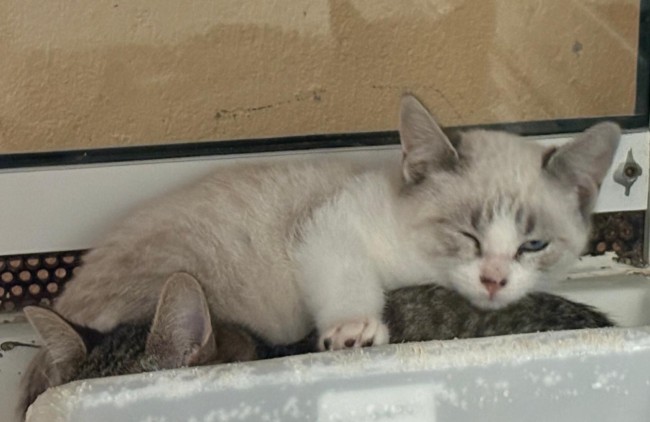 Almu y Fredo, son hermanos y nacieron en una fábrica, pero atropellaron a su mamá y se quedaron huérfanos muy pequeñitos. Uno de los trabajadores sintió lástima de ellos, los capturó y se los llevó a su casa hasta que pudimos acogerles. Los dos pequeños llegaron con mucho miedo y las voluntarias están trabajando con ellos para que poco a poco ganen confianza.