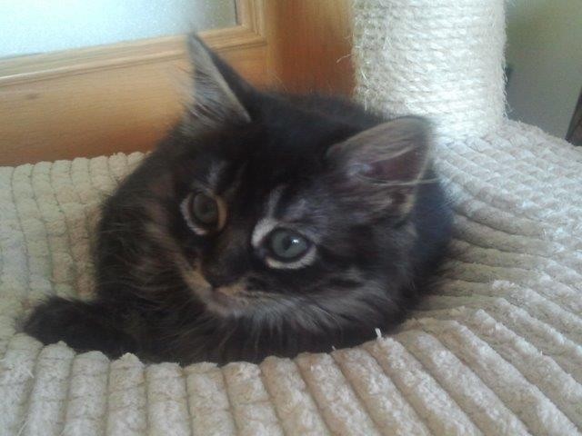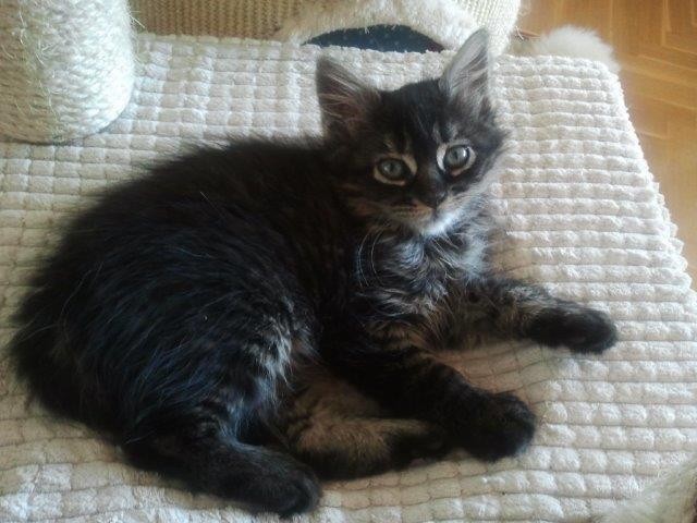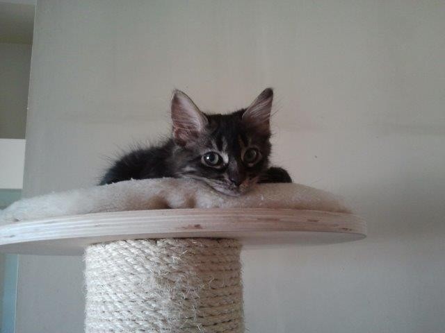 Esta gatita nació en la calle junto a sus hermanos, que ya han sido adoptados. La madre los llevó a los jardines de un instituto y allí los crió hasta que fueron lo suficientemente grandes como para valerse por sí mismos. La mamá se castró y vive libre, ya que es salvaje. Fifi es una gata muy tranquila, se lleva bien con otros gatos y con Quintina también. Las dos son muy buenas y no tocan, ni rompen nada.