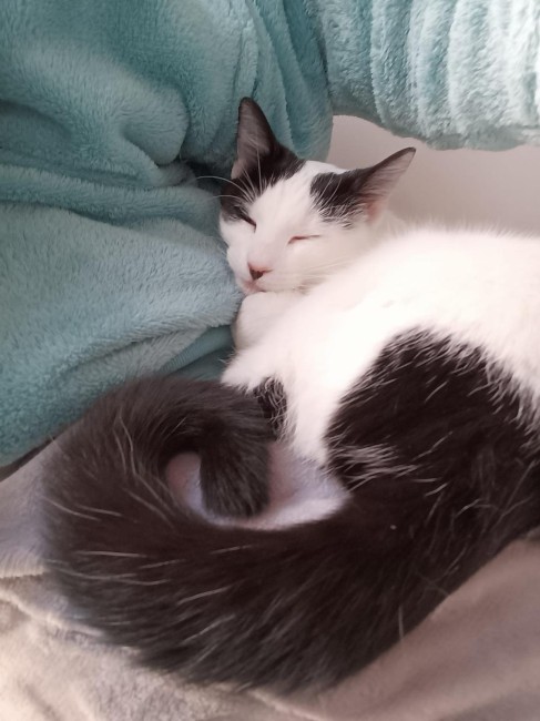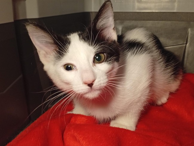 Esta pequeñina llegó a nosotros gracias a la policía, que la encontró en la calle, solita y maullando desesperada de hambre. Era tan diminuta que aún no podía comer por sí misma, y gracias a los cuidados de su casa de acogida ha salido adelante.