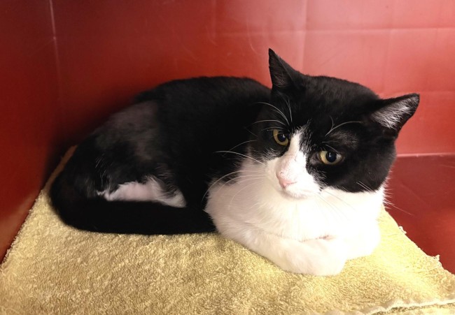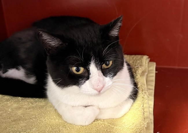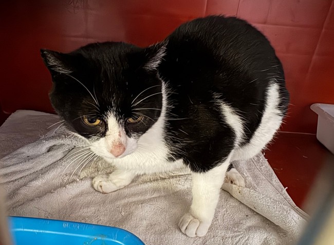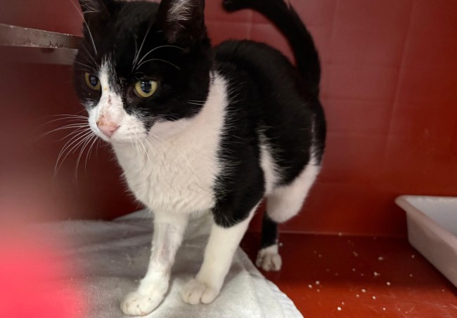 Es una monada de gata, chiquitita, muy tierna, dulce y sensible. Esta preciosa gata tuxedo, a pesar de que le falte una patita, se mueve con total normalidad y hace vida de gato como cualquier otro.