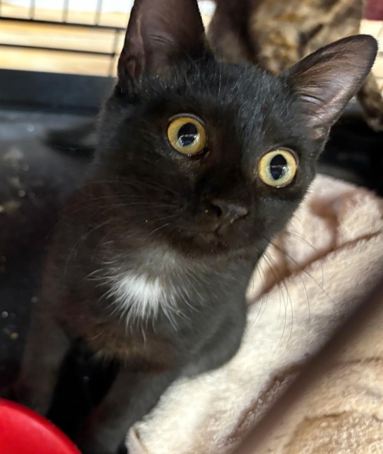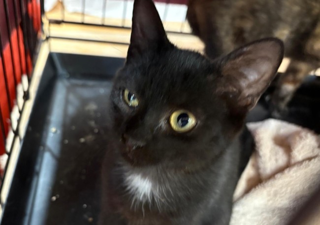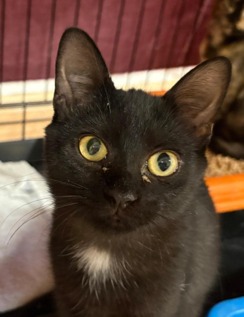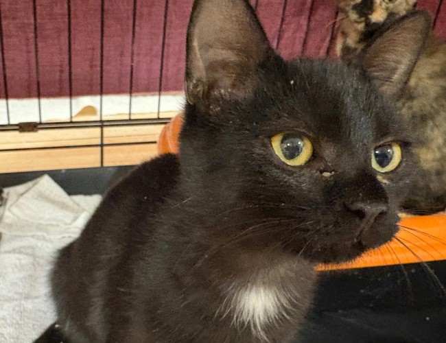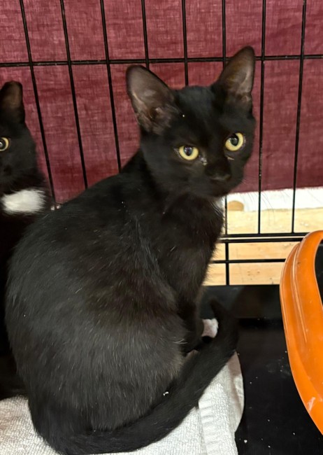 Piper (negro, macho), su hermanito, es un gato atrevido, sociable y juguetón. Llegó con un poco de miedo, pero ya no queda nada de esa desconfianza. Ahora disfruta del cariño de las voluntarias, busca mimos y adora los juegos.