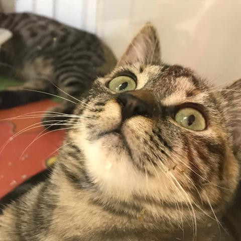 Soy una gatita muy sociable y además soy la que me encargo de dar la bienvenida a toda persona o gato que llega a nuestro cuarto. Es que me han dicho que hay que ser educada ante todo. Me gustan mucho los mimos y jugar con mis compañeros.