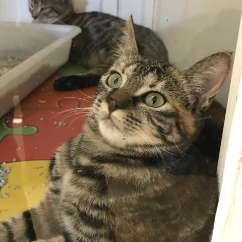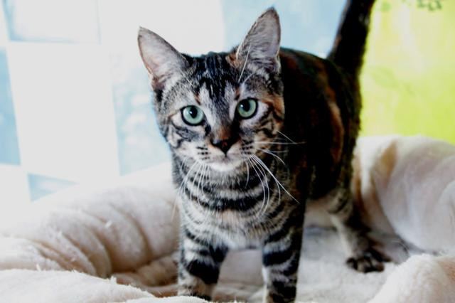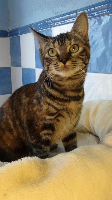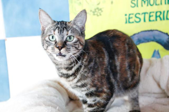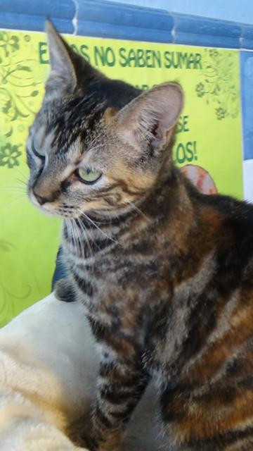De los tres hermanos, es la más sociable. Es muy buena con las personas y se lleva bien con otros gatos, sobre todo si les gusta jugar, como a ella.