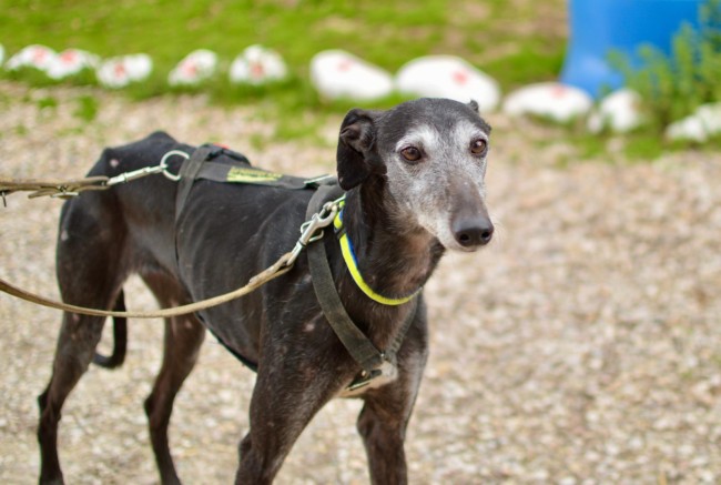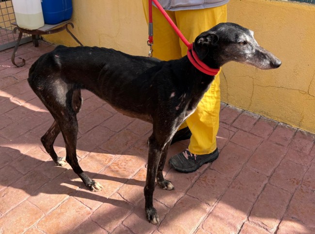 Es una galga súper sociable, enérgica, muy juguetona y cariñosa. Le encanta correr y que le hagan caso. Se lleva bien con sus compañeros, aunque es un poco intensa: quiere jugar todo el tiempo y, como es tan rápida, nadie la pilla. Se deja manipular estupendamente y pasea muy bien.