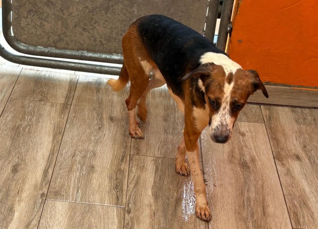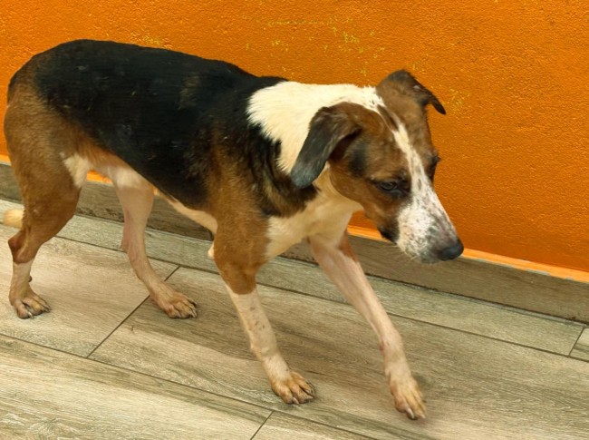 Es uno de los 52 perros rescatados de una infravivienda de Arganda del Rey donde vivían hacinados.