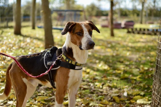 Aun así, Alejo es un perrito sociable y simpático, con buena relación con otros perros, tolera la manipulación bastante bien y pasea muy bien.