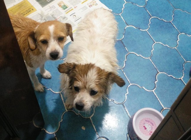 A Santolaya y Baeza las encontramos en la carretera a mediodía, con más de 40 grados, en Úbeda (Jaén). Con un poco de paciencia se acercaron y las pudimos coger y meterlas en el coche. Son muy buenas aunque algo tímidas. En el coche nos hemos hecho cientos de kilómetros con ellas y viajan súper tranquilas tumbadas en el asiento. En casa se portan muy bien, son tranquilas y no dan un ruido. Baeza anda con la correa bien si va Santolaya delante, pero ella no anda mucho aún y a veces hay que cogerla en brazos. Están en una casa de acogida donde les están enseñando, se nota que nunca antes habían ido atadas. Son cariñosas y les gusta estar con gente y que las acaricien. El resto de perros en la distancia les dan miedo y ladran, sobretodo Baeza, pero si se presentan poco a poco no hay problema, son sociables con otros perros.