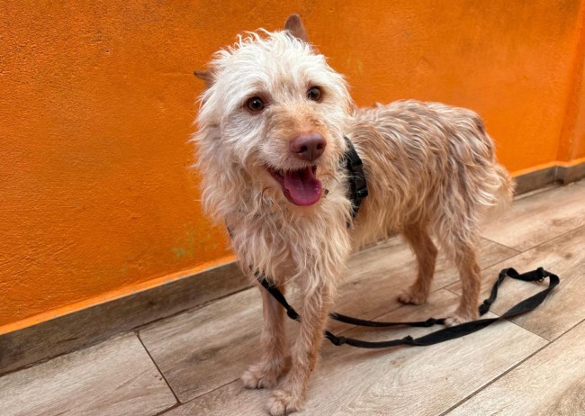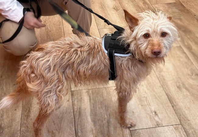 Está aprendiendo a pasear con correa; todavía se está acostumbrando y necesita paciencia. La manipulación no es lo que más le gusta, pero se deja hacer sin problema.