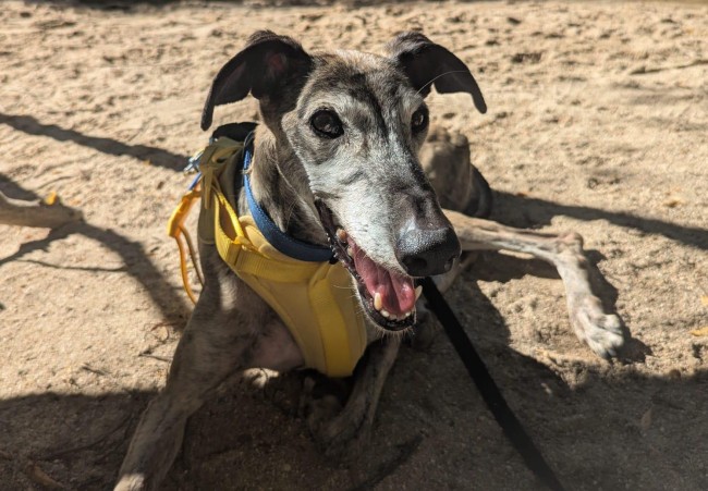 Bandeira necesita encontrar ya una familia definitiva. Sí, es un galgo, y sí, de tamaño mediano-grande, pero tiene una capacidad increíble para adaptarse a cualquier hogar, por pequeño que sea. Lo único que pide a cambio es amor.