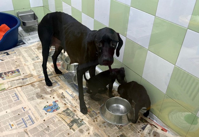 Los cachorros Tropa llegaron a nuestro albergue junto a su madre Silvia. Como corresponde a su edad son un terremoto, pero cuando llenan la barriga, se echan buenas siestas. Su madre ya está un poco cansada de sus niños y no los va a echar de menos. Ya comen pienso y tienen puesta la primera vacuna. Cuando termine la desparasitación pueden ir a vivir con una familia.