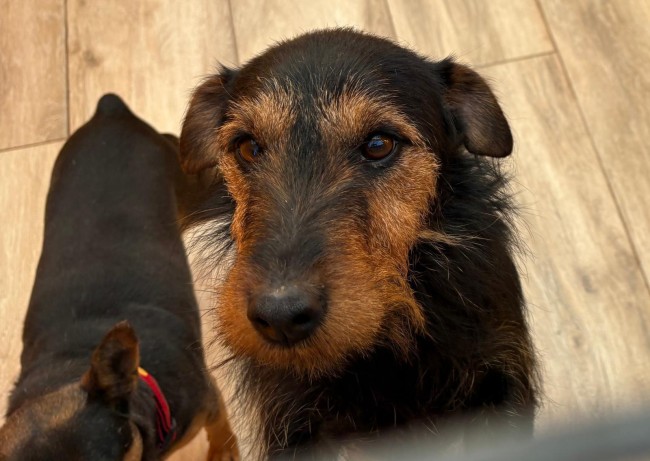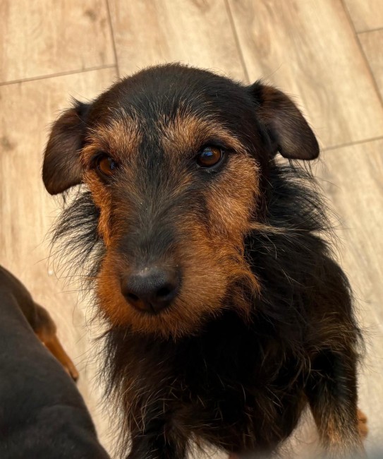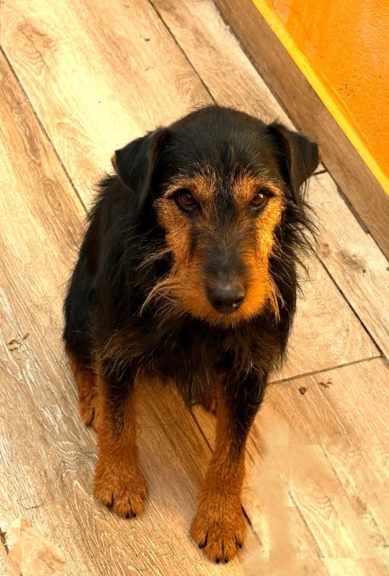 Es un perrito sociable y cariñoso, convive con su compañera Chiva.