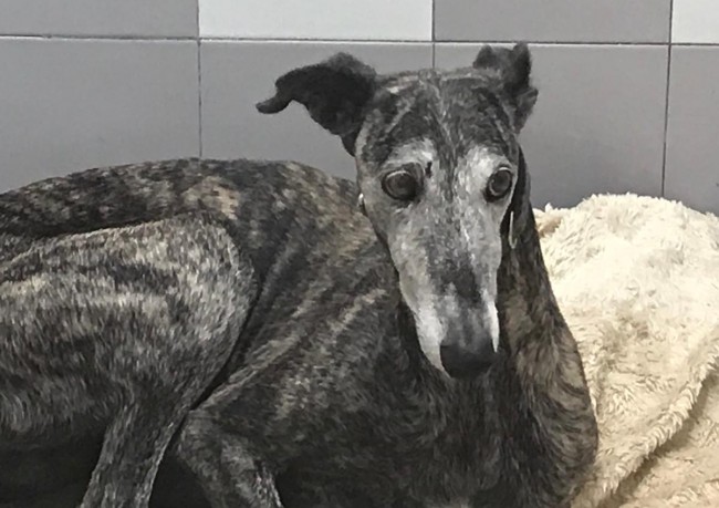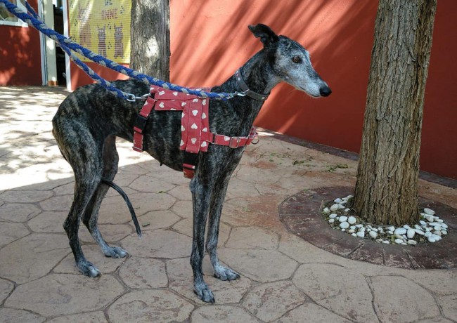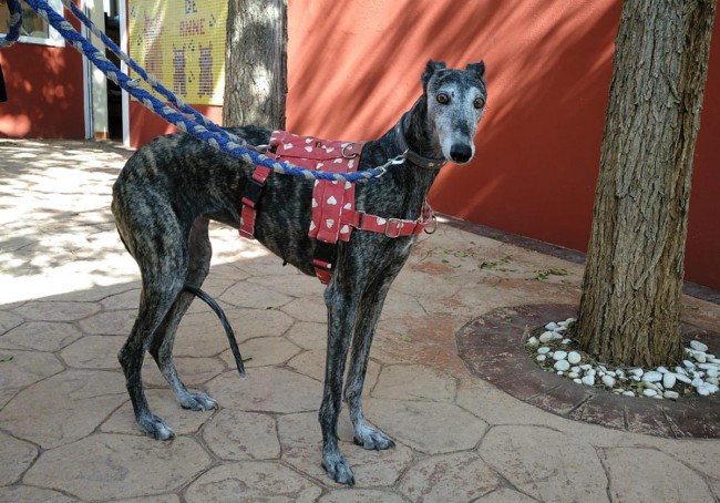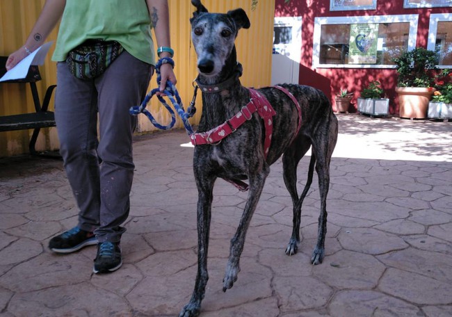 Me llamo BRUNILDA y soy una de esos cientos de perros de caza desechados por .... no saber cazar .... y luego ... por no ser una buena madre cuando ya estaba cansada de criar y criar sin parar. Como todos los galgos tengo ese puntito de susto pero no me dura mucho y enseguida demuestro lo cariñosa y agradecida que soy. Sé andar con la correa y me llevo bien con los otros perros.