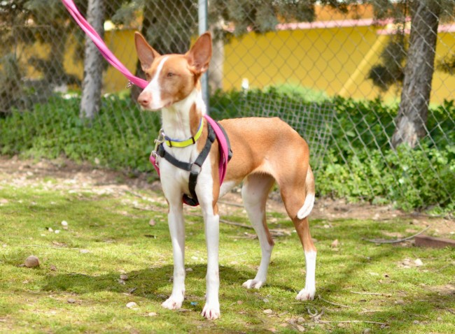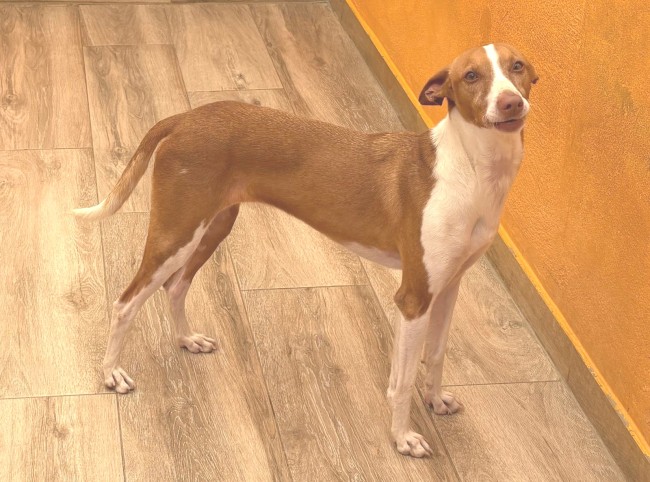 Es una perra estupenda, joven y guapa, muy activa, simpática y cariñosa. Pasea bien con la correa.