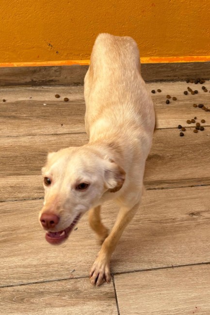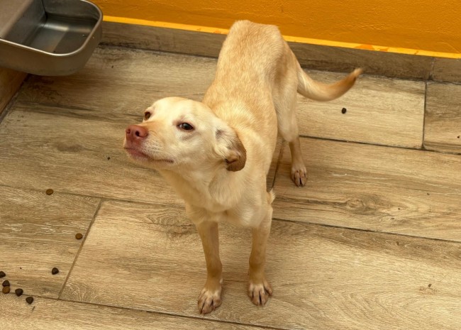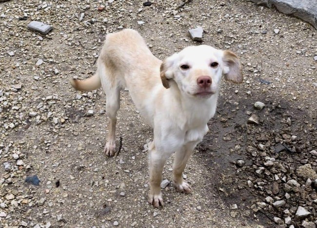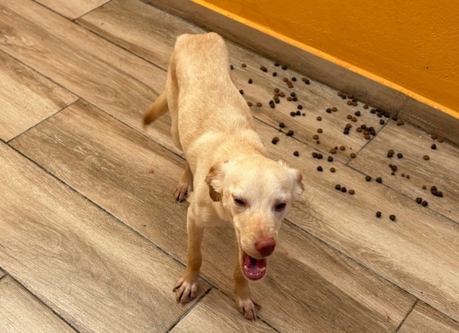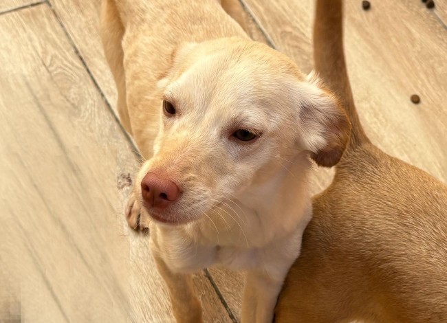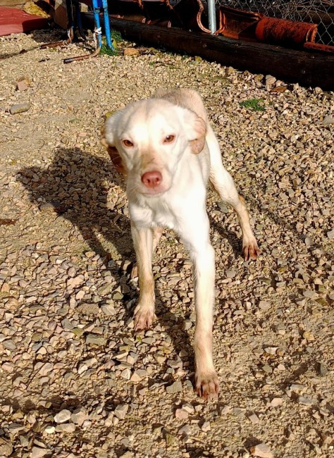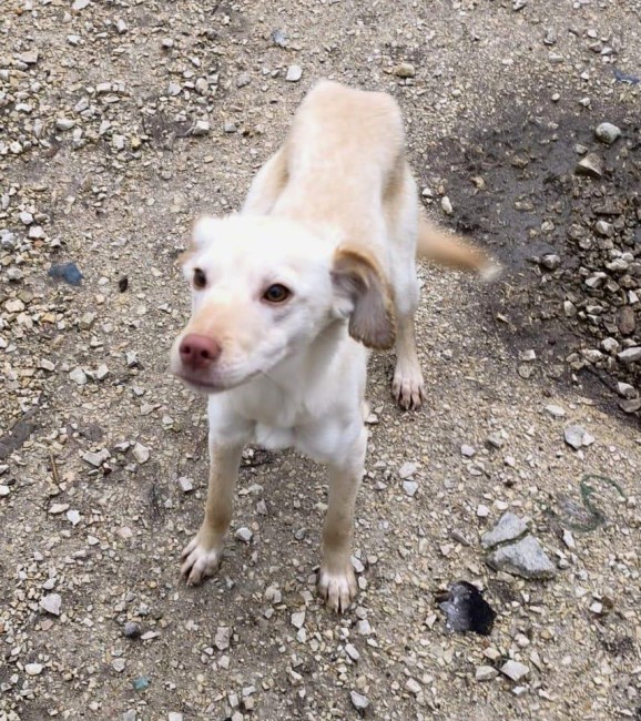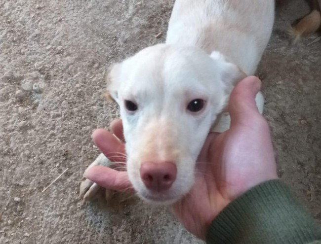Canela fue recogida en un olivar por un agricultor, la llevó a la nave de un amigo voluntario de una asociación que le dio refugio.