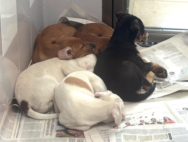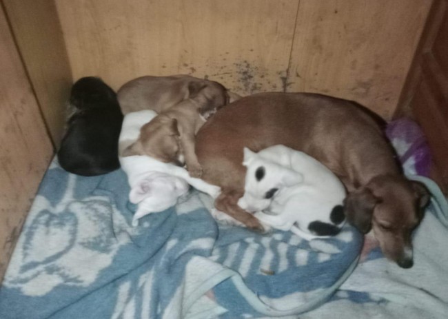 Los 5 hermanos Pink son hijos de una podenca que tiene dueño, se le ha obligado a castrarla para recoger a sus cachorros.