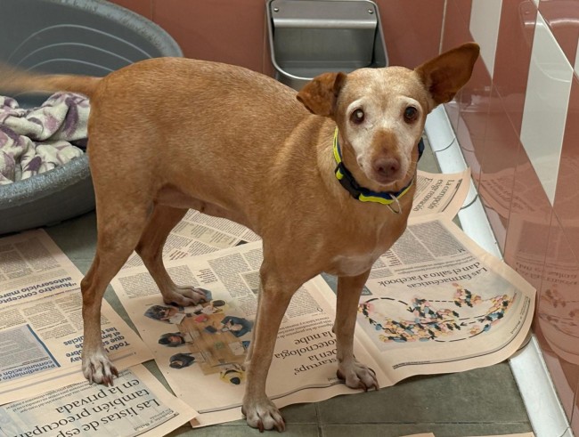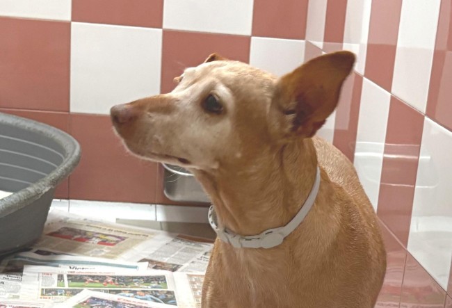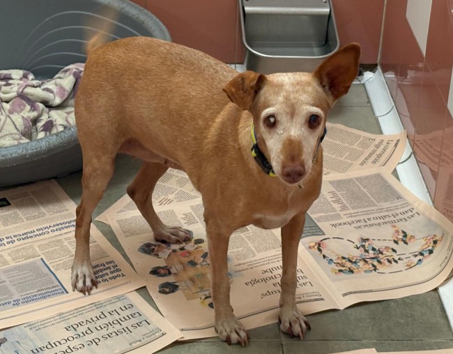 Es una podenquita de unos 6 años, y es tranquila, buena y muy tierna. Al principio se muestra tímida y un poquito temerosa, pero cuando recibe cariño, palabras suaves y un entorno seguro, se anima a explorar y a seguirte.