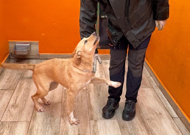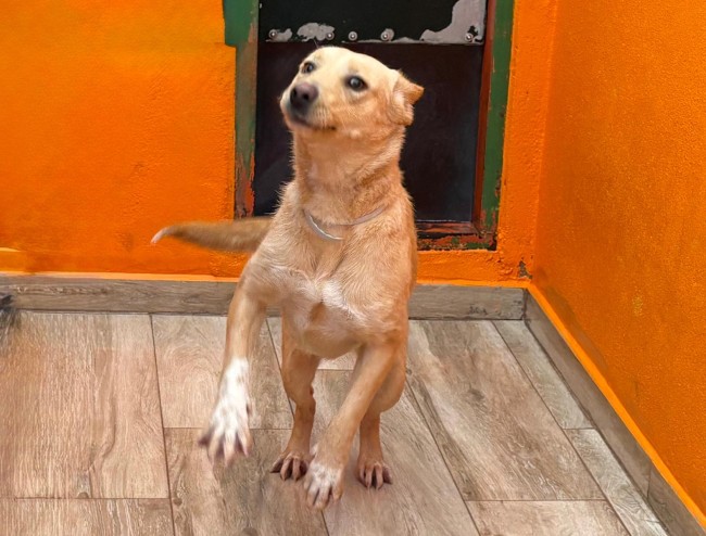 KENIA viene de una perrera del sur de Madrid, teníamos espacio en el albergue y hemos acogido a varios, esperamos que pronto sean adoptados.