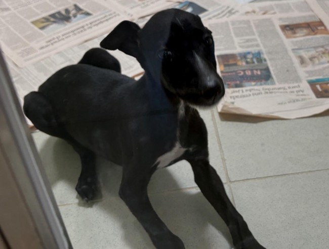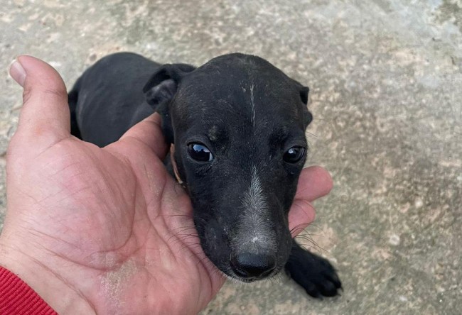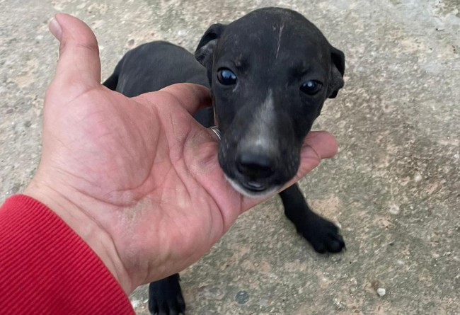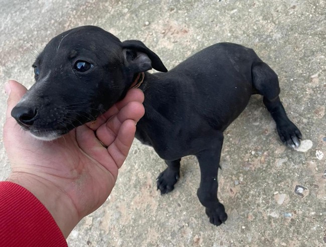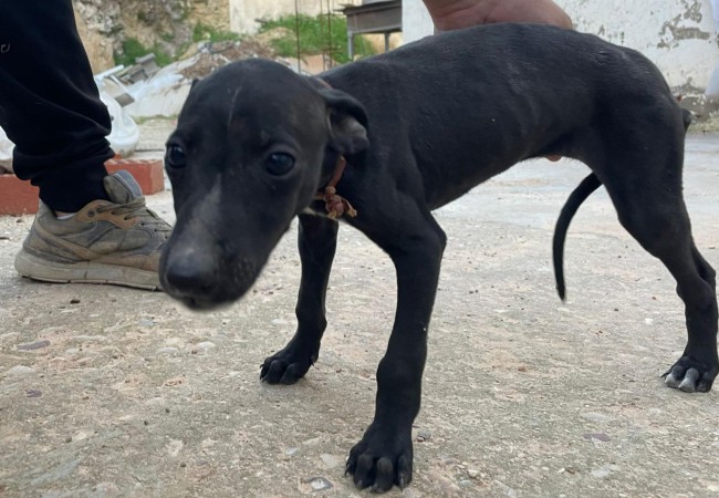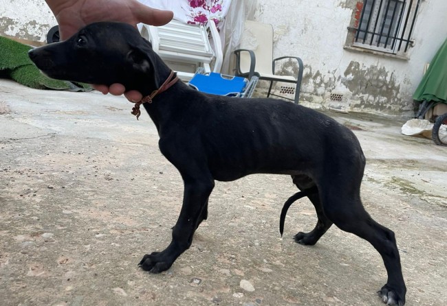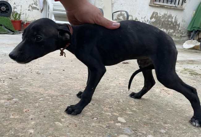 Rescatado en una finca donde no recibía los cuidados que necesita un ser tan vulnerable. Es un cachorro de galgo.