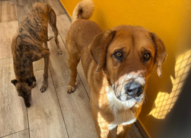 Tras una operación del Seprona, se han incautado varios perros, vivían en un recinto sin los cuidados ni atención veterinaria, una señora recogía perros con buena intención, pero no tenía ni medios ni conocimientos para el cuidado de los animales. Entre ellos está León: