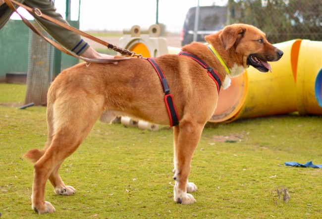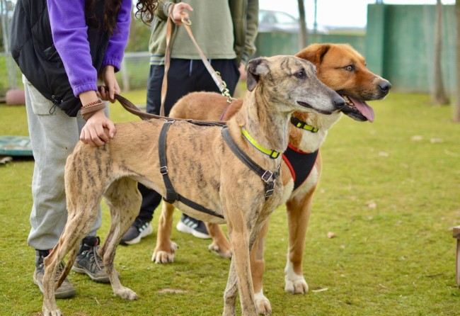 Pasea bastante bien, aunque puede sobresaltarse con algún estímulo nuevo o ruido. Si le entiendes y le transmites seguridad, todo irá bien. Eso sí, León no necesita bajo ningún concepto mano dura ni malas palabras: es un perro sensible y no queremos que las personas se conviertan en algo negativo para él en una etapa tan importante de su vida.