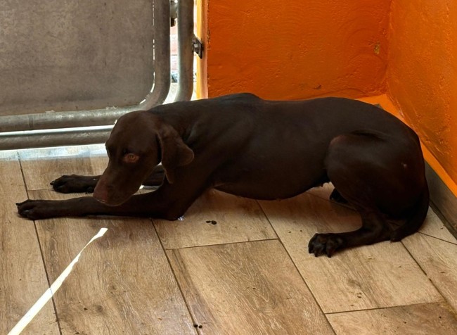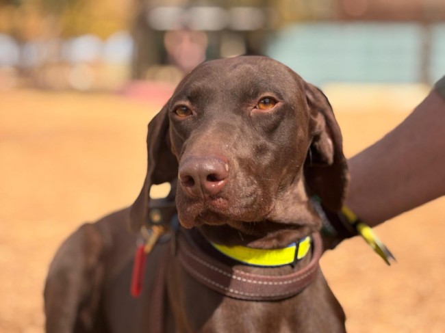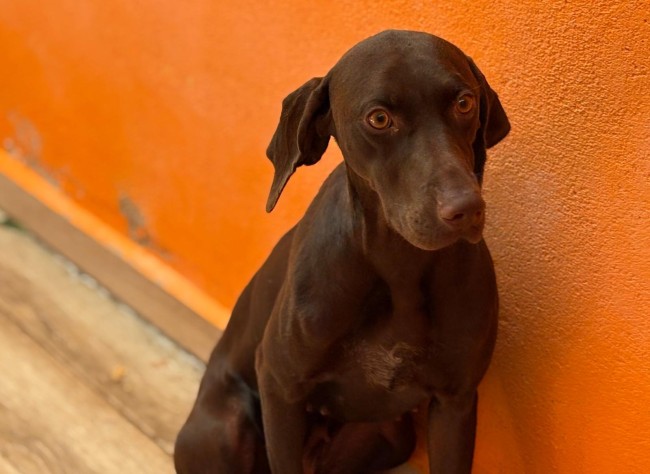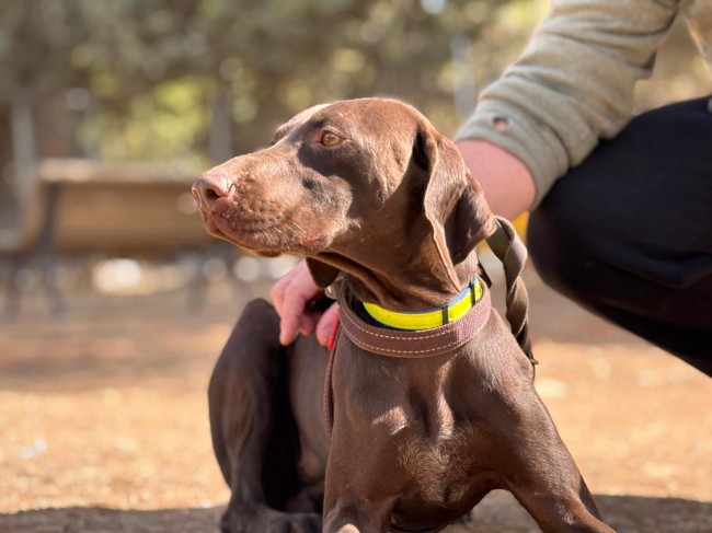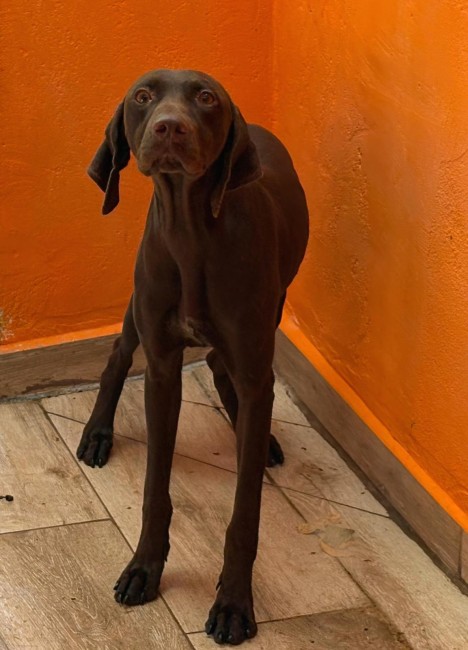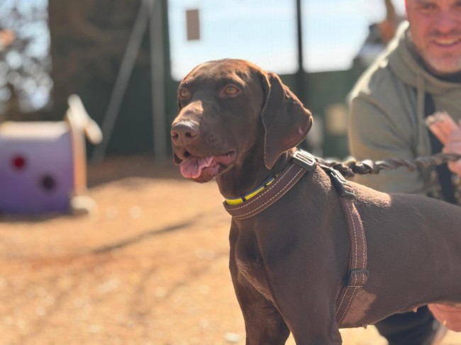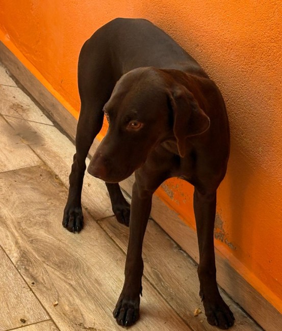 Lina es una braco alemana, tiene apenas un añito y ya busca una familia. No sabemos nada de su pasado, aunque probablemente haya sido un desecho de caza.