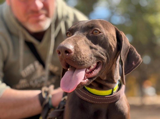 Con otros perros es súper sociable, disfruta la compañía y adora investigar todo lo que se cruza en su camino. Como es propio en esta raza, es una perra activa, necesita largos paseos y actividad diaria.