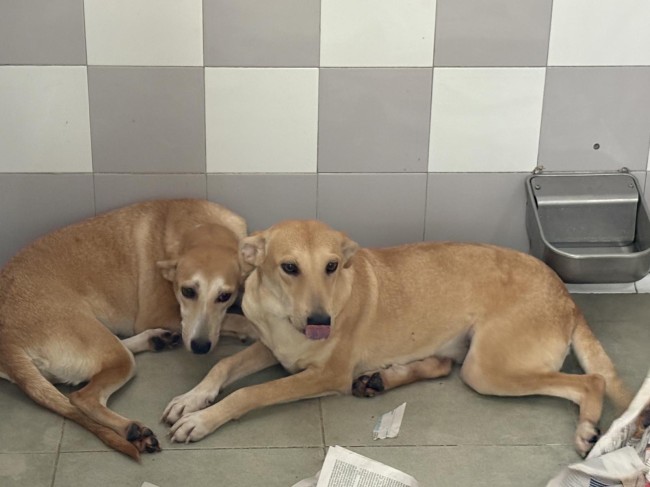 A estos dos hermanos, los entrega al centro un ciudadano que afirma haberlos encontrado en medio de una carretera que une dos poblaciones. Llegaron muy mal, muy delgados, llenos de parásitos. Ya están bien de peso y limpios de garrapatas, en proceso desparasitación interna.