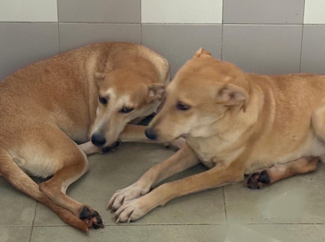 A estos dos hermanos, los entrega al centro un ciudadano que afirma haberlos encontrado en medio de una carretera que une dos poblaciones. Llegaron muy mal, muy delgados, llenos de parásitos. Ya están bien de peso y limpios de garrapatas, en proceso desparasitación interna.