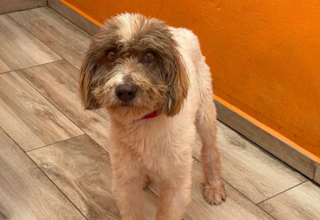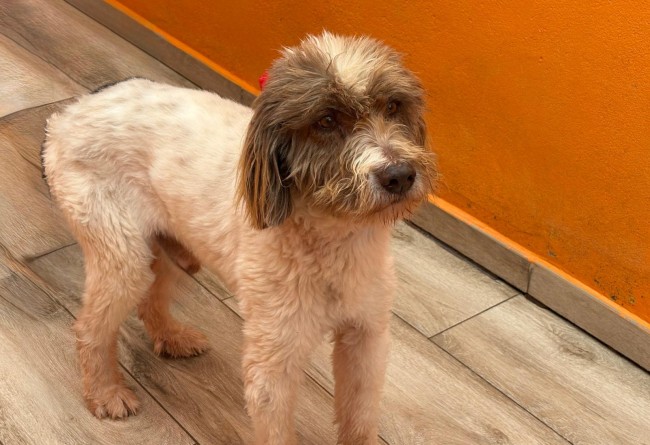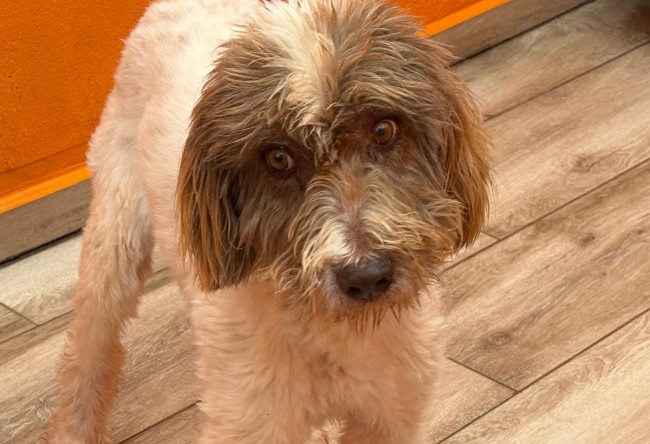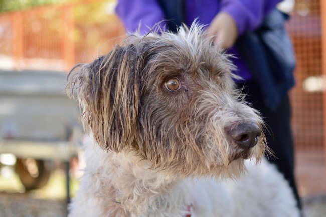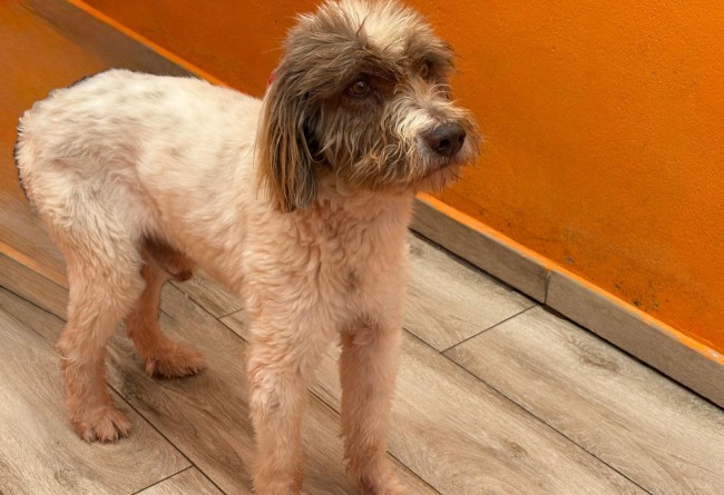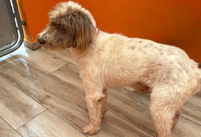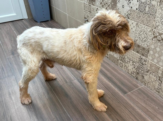 A este perro le echaron por encima de la valla de la prote, junto a otros dos. Con el pelo tan enredado que lo primero que se hizo fue raparle y darle un buen baño, tenía encima años de descuido. Un caso de abandono más