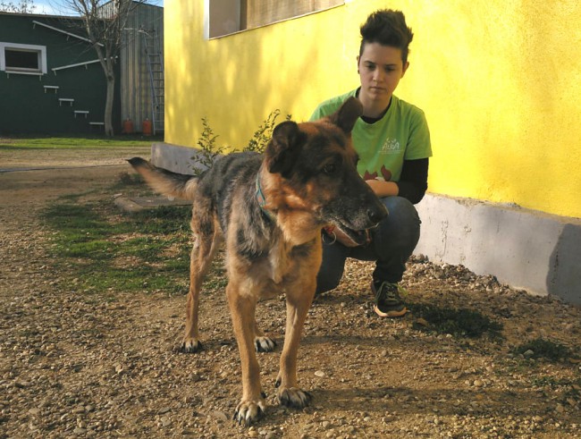 Me llamo MEDIO BESO y me encontraron abandonado en una zona de campo. Os podéis imaginar a un abuelito como yo, solito y sin nada que comer? lo pasé fatal. Los voluntarios de ALBA me recogieron y descubrieron que tenía chip pero mi antiguo dueño no dio señales de vida y le ha caído una multa por no haberme atendido ni venido a recogerme. Como podéis ver no tengo ni dientes y a veces tengo problemas de dermatitis típicas del pastor alemán. Esos son los problemas de ser de raza, que a veces hay patologías asociadas a cada raza. Por eso los voluntarios de ALBA me bañan de vez en cuando o me limpian cuando me sale alguna lesión en la piel. Soy un perro obediente, sé andar con la correa y me llevo bien con otros perros. Convivo en la actualidad con dos machos y una hembra y me llevo bien con ellos. Me quedan pocos telediarios . o pocas series de Netflix. Me ayudas a no morir en un albergue?