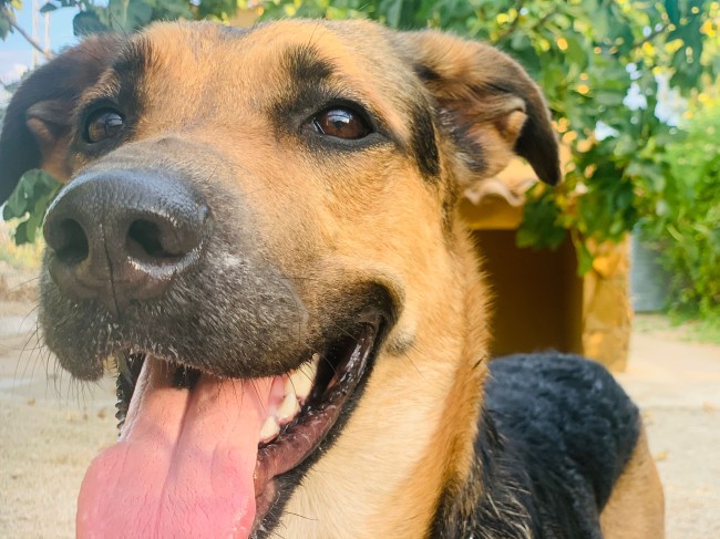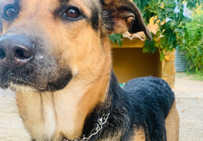 Esta preciosa pastor alemán, malvivía en la terraza de un piso, entre sus excrementos y sin sitio donde guarecerse, cuando ladraba desesperada, su dueño la pegaba .Nunca salía a la calle.