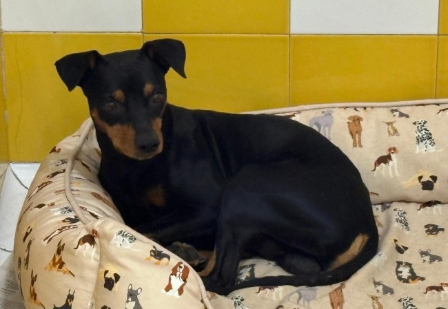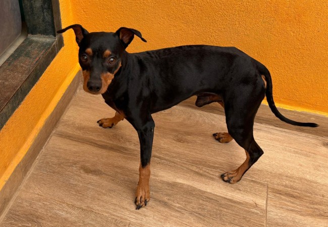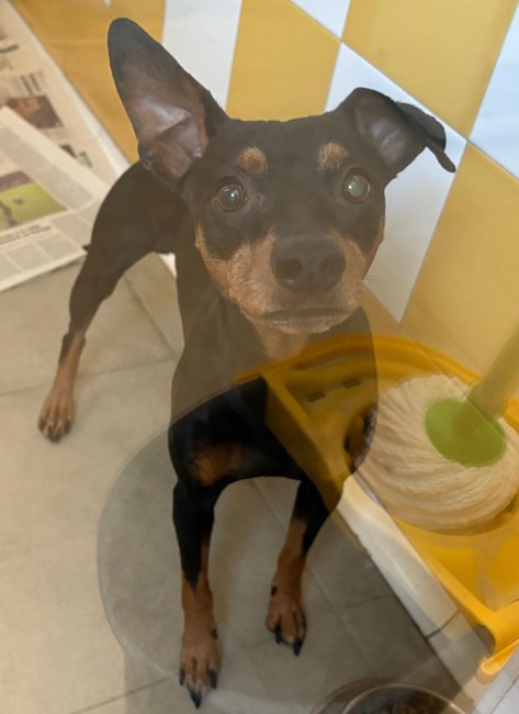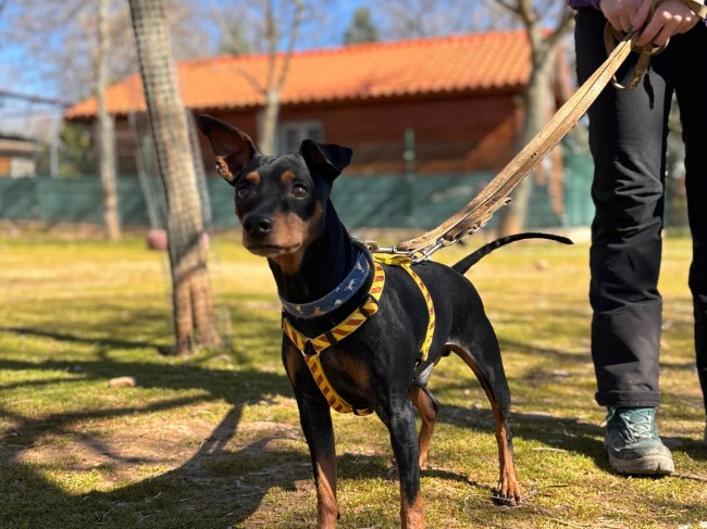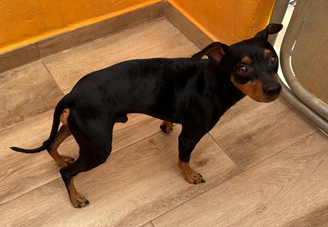 Patatín es un cruce de Pinscher miniatura de 7 años (aunque nadie lo diría). Fue encontrado vagando por las calles de uno de los pueblos donde realizamos la recogida. Tenía dueño, pero lo dejaba correr suelto por carreteras con el consiguiente riesgo de atropello. Ahora buscamos para él algo mucho mejor: una vida segura y en paz.