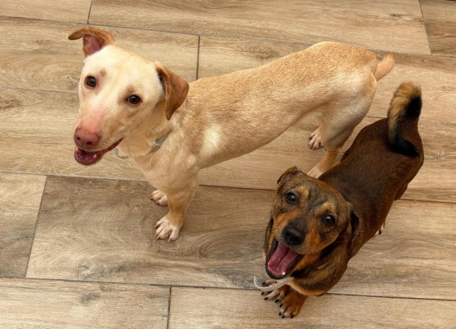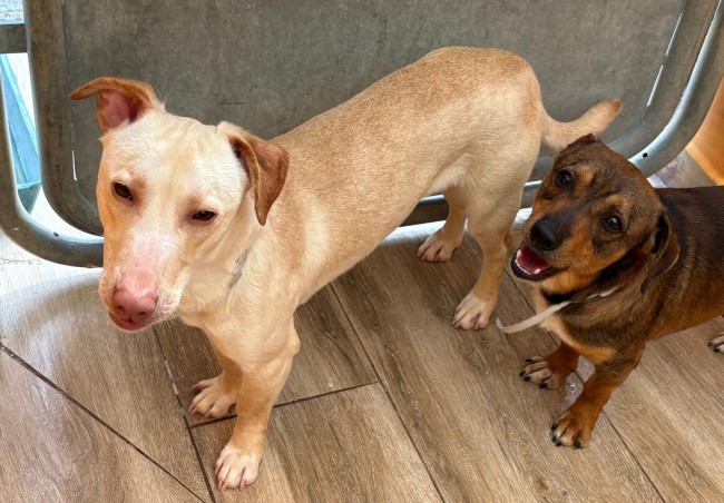 Estos dos pequeños (Rima y Portu) aparecieron juntos en la calle. No llevan microchip, por lo que no ha sido posible localizar a sus propietarios, aunque ambos parecen estar bien cuidados y tienen un carácter excelente: son sociables, nobles y se muestran confiados con las personas.