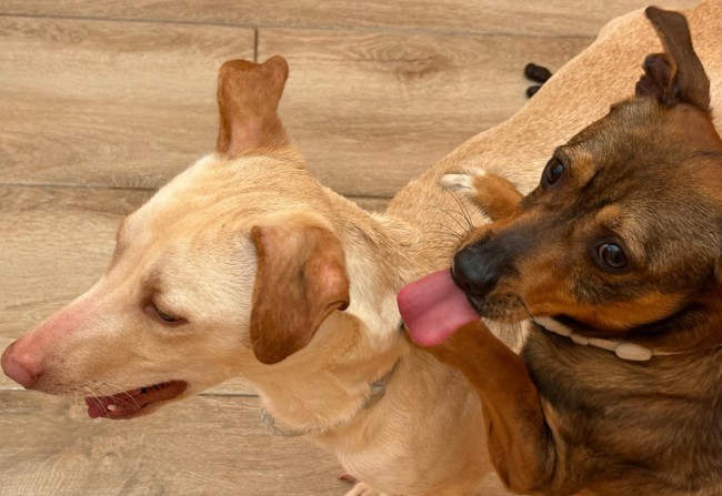 Estos dos pequeños (Rima y Portu) aparecieron juntos en la calle. No llevan microchip, por lo que no ha sido posible localizar a sus propietarios, aunque ambos parecen estar bien cuidados y tienen un carácter excelente: son sociables, nobles y se muestran confiados con las personas.