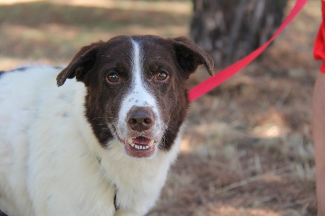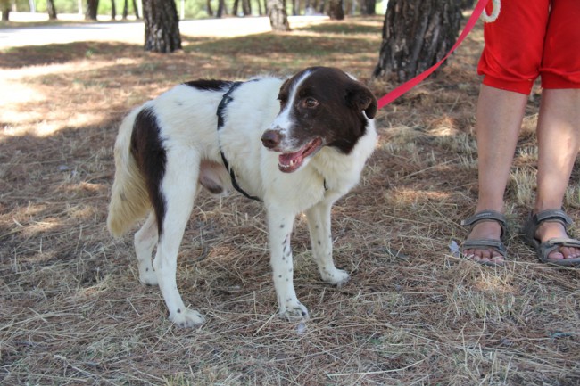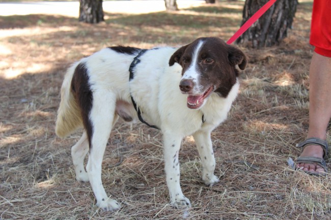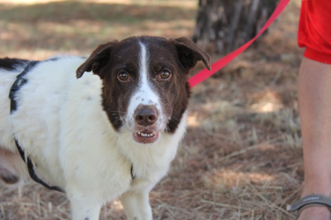 Risitas era un poco desconfiado e inseguro cuando llegó pero ahora se pone muy contento en cuanto nos ve; de los nervios y alegría que le da nos saca los dientines (de ahí su nombre), pero es una especie de tic que tiene, es un quiero y no puedo Esperamos que encuentre un adoptante que lo entienda ya que en poco tiempo se ha dejado acariciar y pasea con su arnés; aún anda un poco perplejo, como que no termina de creerse su buena ventura.