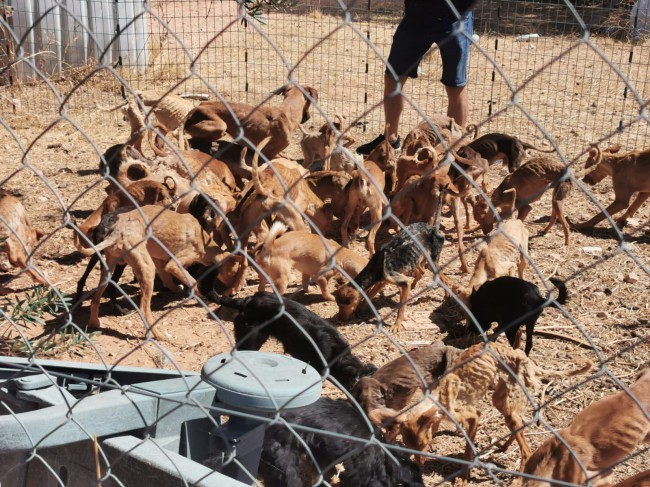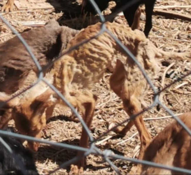 Sandoval y Mazzy llegaron esqueléticos. Vivían en una finca junto a otros perritos, estaban todos deshidratados, desnutridos y algunos no podían ya ni ponerse en pie. Completamente debilitados hubo que ponerle suero a muchos de ellos, seguramente habrían muerto si no hubieran sido rescatados.