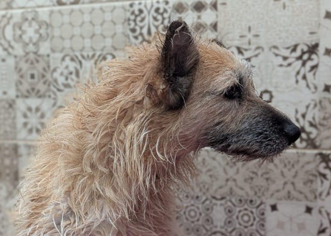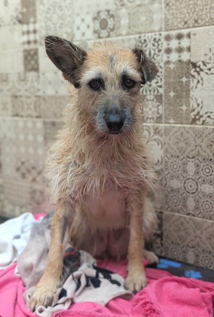 Le estamos realizando todo tipo de pruebas veterinarias, y aunque aún no tenemos todos los resultados de salud, parece encontrarse bastante bien, y come muy bien. Aunque sigue siendo una perrita muy asustada, con paciencia, cariño y tiempo, estamos seguros de que saldrá adelante.
