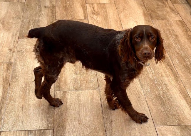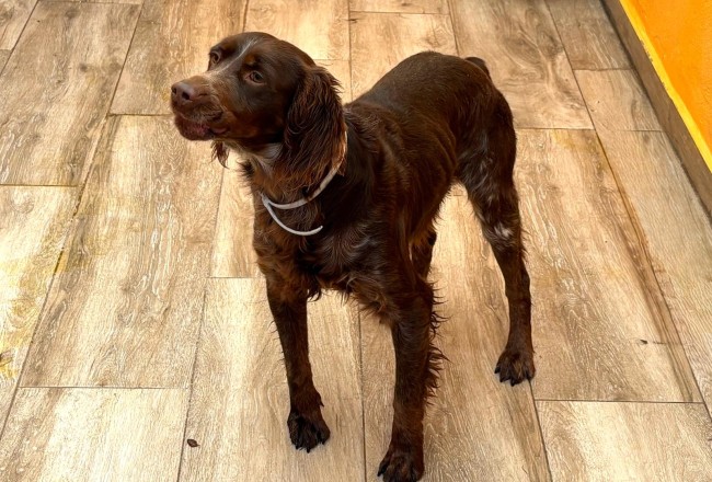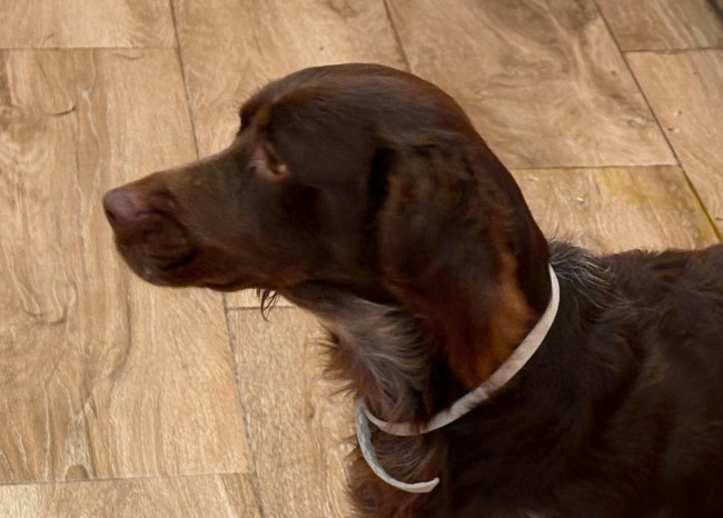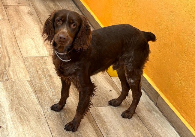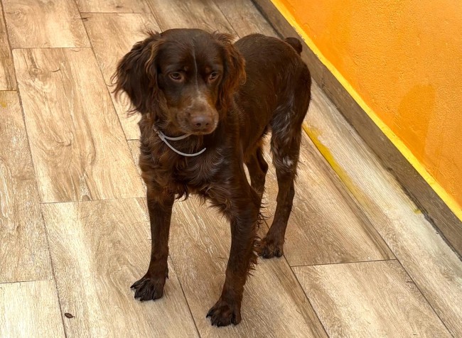 Scotch fue recogido en un camino rural, estaba solo, parece una pérdida o abandono tras jornada de caza.