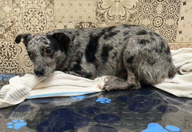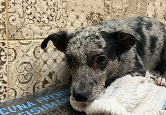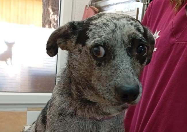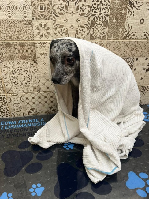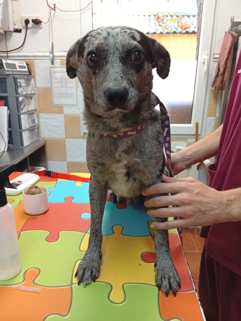 Una pareja lo vio vagando por la calle. Preguntaron por él, y todo el mundo les decía que llevaba mucho tiempo abandonado, deambulando. Al principio no se dejaba tocar, pero con paciencia consiguieron cogerlo y traerlo al albergue.