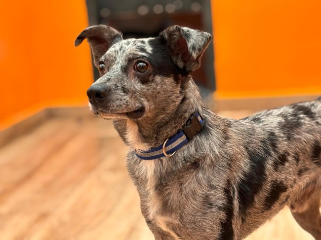 Le encantan las chuches y se deja manipular con suavidad. Aún le resulta raro llevar arnés, pero lo acepta sin demasiado problema. Acaba de salir de cuarentena y estamos empezando con los paseos: en zonas interiores muestra interés por explorar (siempre con cautela), aunque el exterior todavía le da respeto e intenta refugiarse.