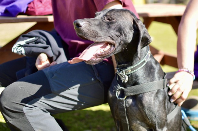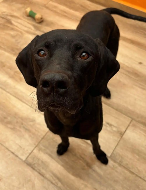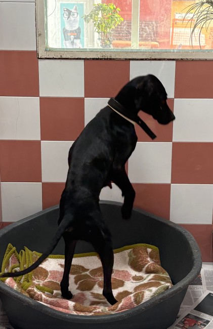 Como buena pointer, es muy sociable, simpática y cariñosa. Tiene un carácter alegre, muchísima energía y es muy curiosa: le encanta explorar, olfatear y descubrir el mundo. Se deja manipular sin problema, y está aprendiendo a pasear con correa. Aún está muy delgadita, pero cada día está mejor.