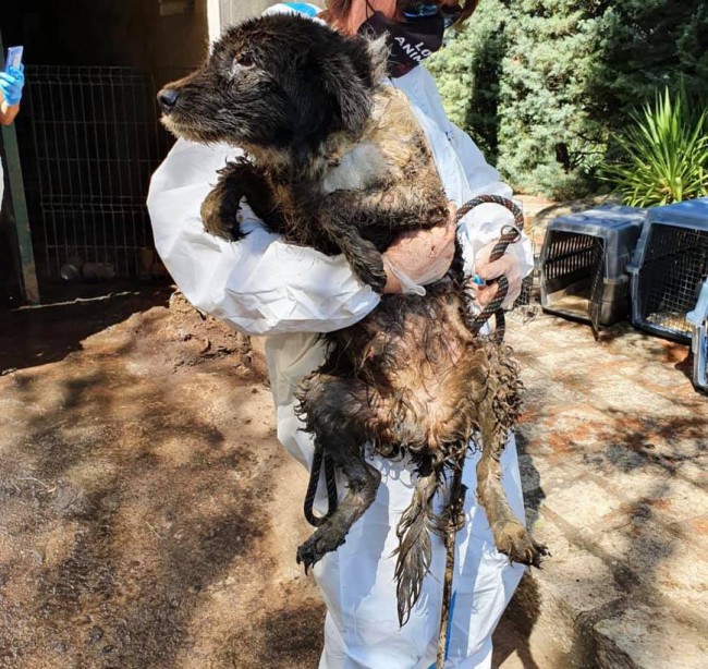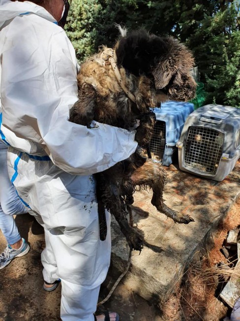 En Cadalso de los Vidrios malvivían 26 perros en unas condiciones higiénico sanitarias lamentables. Todos dormían sobre sus propias heces y orines, todo era un charco de mierda que no se había limpiado en la vida (como podéis ver en las últimas fotos), estaban encerrados y algunos, completamente a oscuras. Venían muertos de hambre, sucios, llenos de rastas pegadas, un horror