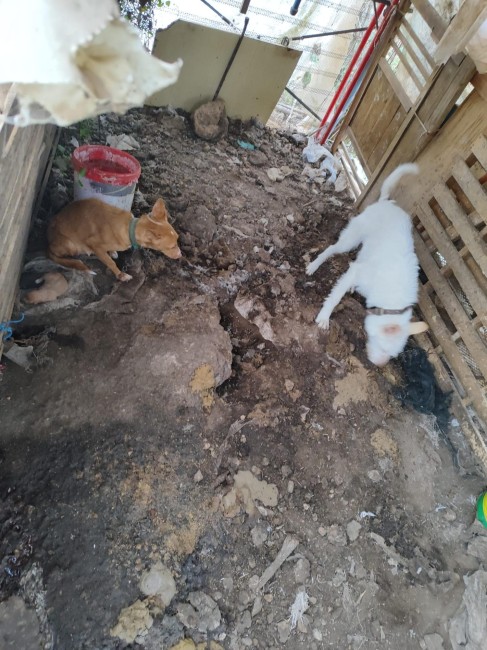 ZORRY fue rescatada de un patio donde estaba atada con una cadena y rodeada de basuras. En esa situación, parió a varios cachorros. Cuando la rescataron, solamente quedaba uno (Coyoti) que vino con su mami al albergue.