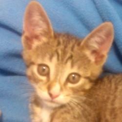 Gatito recogido de en medio de la carretera, tras un aviso de un posible atropello, junto a su hermanito tirados en el suelo sin moverse, por desgracia su hermanito no sobrevivió; pero él después de estar bajo muchos cuidados, se ha recuperado estupendamente. Tiene un carácter muy, muy bueno y dócil, ronroneador, mimoso, perfecto acompañante de siestas y le encanta jugar, correr y las caricias, se lleva muy bien con otros gatos, y sobre todo agradece la compañía de quien sea.