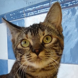Soy una gatita muy sociable y además soy la que me encargo de dar la bienvenida a toda persona o gato que llega a nuestro cuarto. Es que me han dicho que hay que ser educada ante todo. Me gustan mucho los mimos y jugar con mis compañeros.
