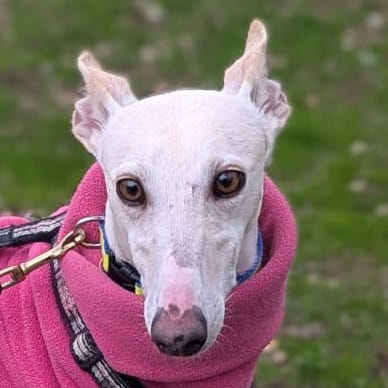 Esta preciosa galga, cazaba con furtivos y fue incautada por la guardia civil, cuando cazaba por un coto cercano al albergue. Como suele suceder no tenía chip ni han tenido interés en recuperarlas. Llegó al albergue muy asustada, pero con el paso de los días se está recuperando.