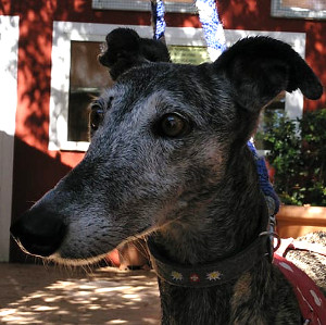 Me llamo BRUNILDA y soy una de esos cientos de perros de caza desechados por .... no saber cazar .... y luego ... por no ser una buena madre cuando ya estaba cansada de criar y criar sin parar. Como todos los galgos tengo ese puntito de susto pero no me dura mucho y enseguida demuestro lo cariñosa y agradecida que soy. Sé andar con la correa y me llevo bien con los otros perros.