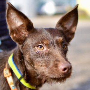 Es muy pequeña, de raza indefinida y color chocolate, es original y diferente a cualquier otro perro.