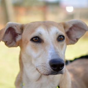 Con paciencia ha ido aprendiendo que los humanos también podemos dar cariño. Ya se deja manipular con cuidado y está empezando a pasear con correa, aunque aún le cuesta animarse. Cuando sale con otro perro, su curiosidad vence al miedo, por eso creemos que necesita un hogar donde haya otro perro equilibrado y sociable, que le sirva de apoyo y le ayude a confiar.